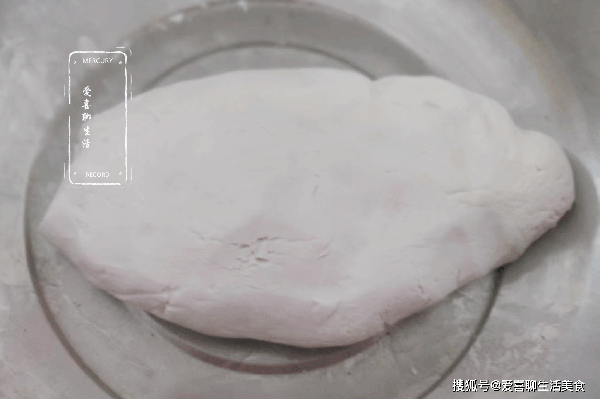 第三步,和面。大盆裡加入半包糯米粉,加入溫開水,邊倒邊攪拌,攪拌至沒有幹米粉後,下手揉成一個光滑的粉團。