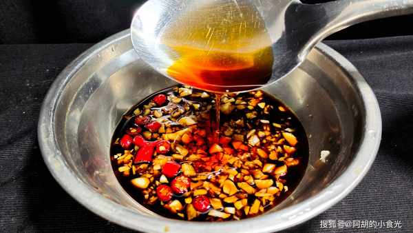 第三步:準備涼拌所需的料汁,空碗中加入蒜末適量,小米椒圈一把,再加入生抽5湯匙左右,分別加入香醋和清香米醋(沒有的可以不加)各2湯匙,而後加入食鹽,雞精,白糖少許,好吃的關鍵是淋入小磨香油一湯匙和少許辣椒油攪拌均勻備用。