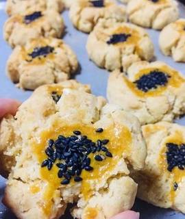 5.最後撒上芝麻,進烤箱,我是2層烤盤一起進的烤箱,上下火180度烤20分鐘後,上下盤的烤箱換位置再烤20分鐘!