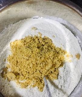 2.好多步驟忘瞭拍照瞭把雞蛋,油,鹽,糖放在一起,攪拌均勻,放入面粉和打磨好的花生,核桃,小蘇打,臭粉,一起攪拌均勻,這個餅幹是非常大氣的餅幹,隨便怎麼揉都可以!沒有太多其他要求!簡單!暴力!哈哈哈。