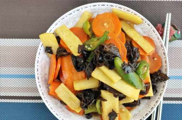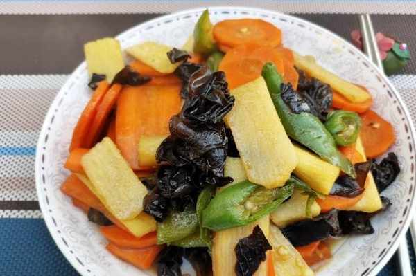 2、制作胡蘿卜山藥炒木耳的時候,不要放太多調味料,炒熟才會鮮香誘人。