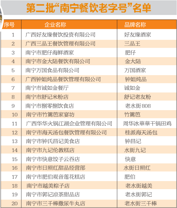 開展第二批“南寧餐飲老字號”認定工作,是南寧市貫徹落實《商務部等8部門關於促進老字號創新發展的意見》文件精神,樹立南寧餐飲文化品牌的一項重要舉措。據介紹,“南寧餐飲老字號”認定條件包括創立字號20年以上,擁有歷代傳承的美食、技藝或店鋪,具有鮮明的廣西和南寧地方特色的名菜名點,具有廣西民族特色和鮮明的南寧地域文化特征,具有歷史價值和文化價值等。通過認定“南寧餐飲老字號”,培育形成一批餐飲老字號知名品牌,將有助於“以點帶面”推動構建“個轉企、企升限、限培強”的階梯式培育體系,促進我市老字號創造更多的社會、經濟和文化價值,助力打造一個有品位、有魅力、有活力的“舌尖上的南寧”。