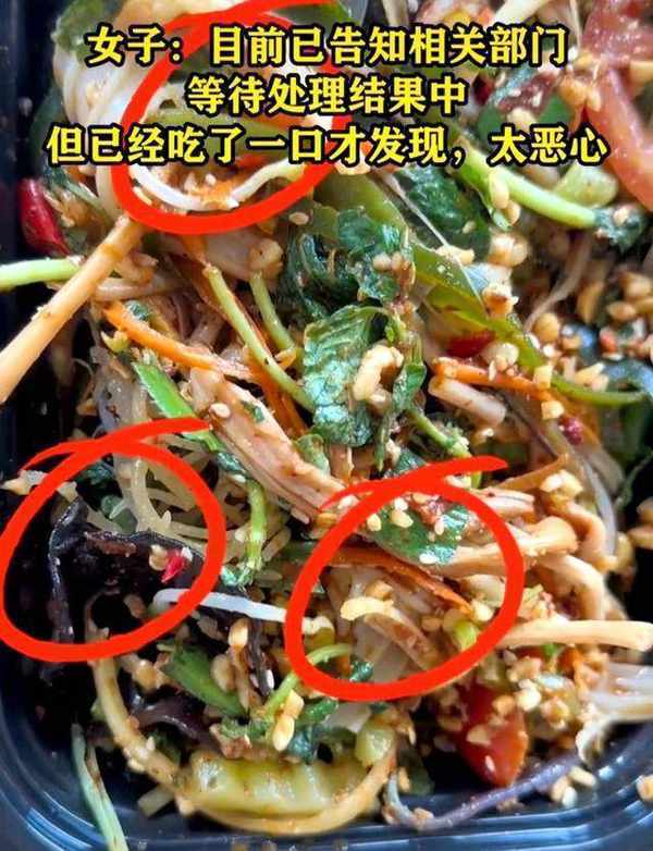 近日,雲南一女子從某餐飲店買瞭涼菜,但在食用的時候發現裡面有蛆蟲,並且還有很多蟲子在爬,,於是她將這一幕拍攝成視頻發佈到瞭網上,引發網友熱議。