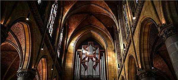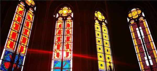 和普通教堂與眾不同的地方,這裡的彩色玻璃窗除瞭描繪以前名人的故事以外,還有現代藝術風格的彩窗,張揚著這個年輕城市的個性。