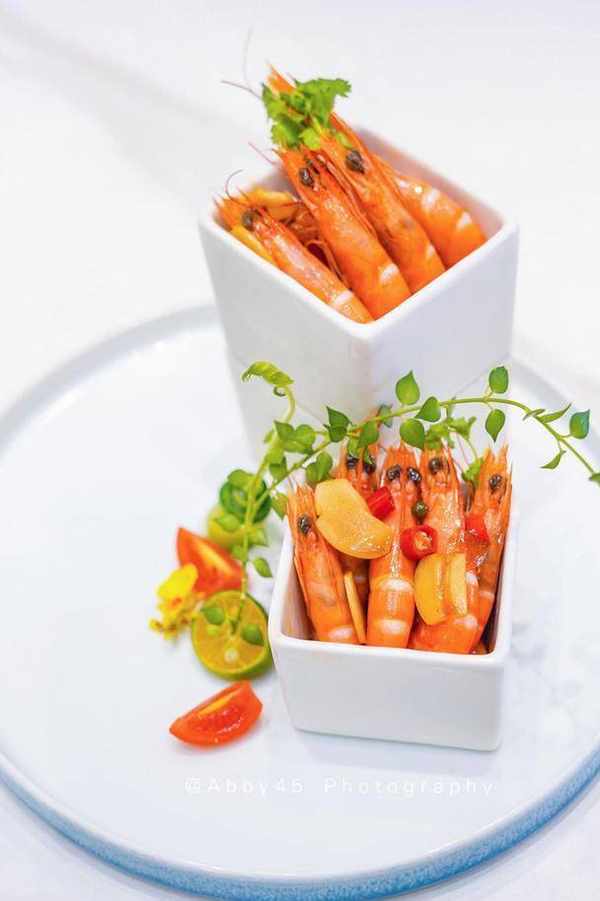【泰式江白蝦】:不同品種的蝦,瀧悅有不同做法。這個江白蝦就和上面小澳龍呈現完全不同的風味,醃制入味的蝦肉,讓人胃口大開,回味無窮。