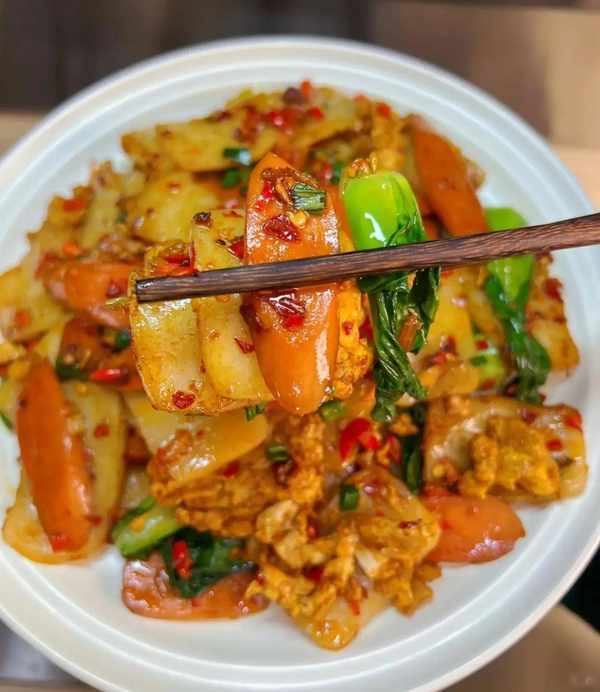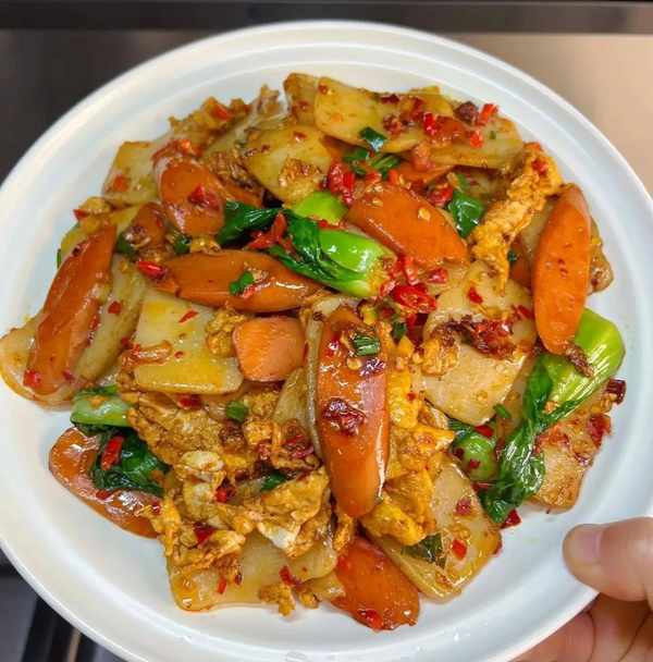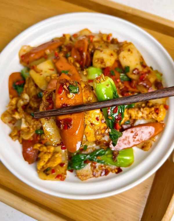 這樣,一道地道的江西辣炒年糕就做好啦!準備來吃吧,快看看有沒有食欲!