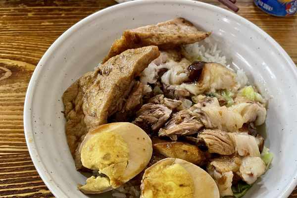 豬腳飯豬腳飯雖叫豬腳,卻是用豬肘子制成的,燉得軟爛的豬肘子,切成小塊,配上一些綠菜、豆幹、肉卷、雞蛋等等,一份豬腳飯就好瞭,影響豐富,很有北方豪放的感覺。豬肉肥而不膩、瘦而不柴,再來一碗蘿卜湯,是解膩的好幫手。如果不喜歡吃油膩的話,豬腳飯還是要謹慎嘗試。