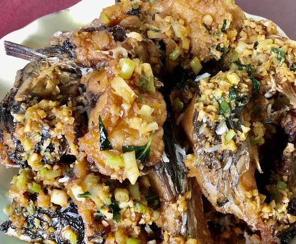 魚生魚生必須采用初出水的活魚,去掉鱗片外皮,切成薄如蟬翼的薄片。蘸料一般用蒜、花生醬、花生油等等一起煮成,再配上薑絲、蘿卜絲等等,吃一口,唇齒留香,十分鮮嫩。魚燜飯魚燜飯在很大程度上保留瞭魚的新鮮程度,把魚洗凈用鹽醃制一會,再把魚炸到兩面金黃備用,大米要用煮沸的魚湯來燜,等到大米開瞭花,湯快耗幹的時候,放入魚塊,在一起燜熟即可。大米的香氣和魚的鮮美完美地融合在一起,這種味道在其他地方完全體會不到。