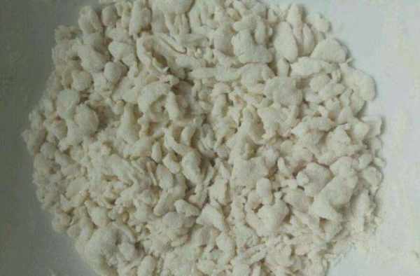 第五步:準備一個小碗,加入面粉和適量的水,朝一個方向混合,混合成大小相等的塊。