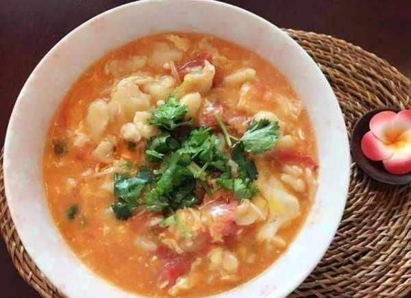 配料表:西紅柿、雞蛋、面粉、水、鹽、蔥、薑、蒜、味精、香油、香菜