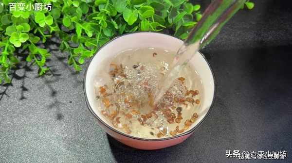 需要吃的時候,我們準備一隻幹凈的小碗,抓上一把,再往裡面倒入剛燒開的開水,這裡一定要加開水進來,用開水激發出花椒裡面的營養物質和它的香氣,用勺子攪拌攪拌浸泡幾分鐘,放置,不燙嘴就可以飲用瞭。