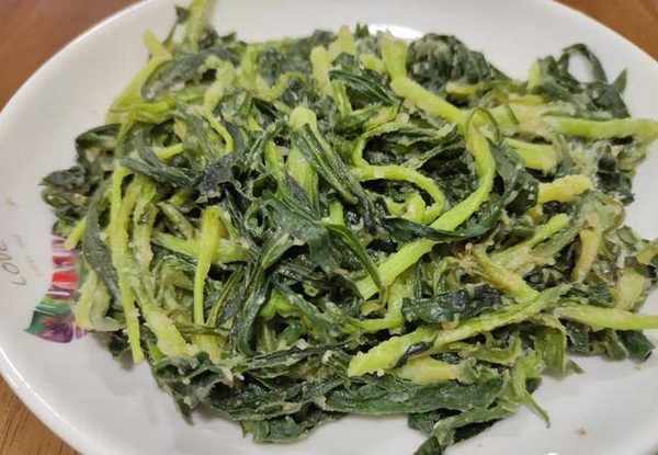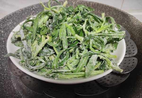 5.很快這樣子一份簡單美味的蒸面條菜就完成,這樣蒸出來的面條菜非常的鮮嫩而且略帶一點甜味,特別好吃。