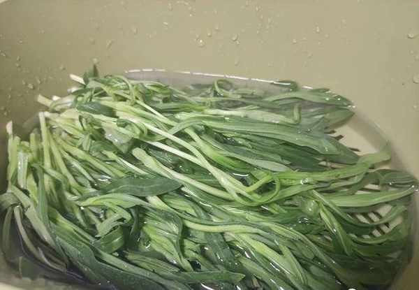 1.面條菜放在水中洗凈,然後切成小段放在一旁瀝幹水分;