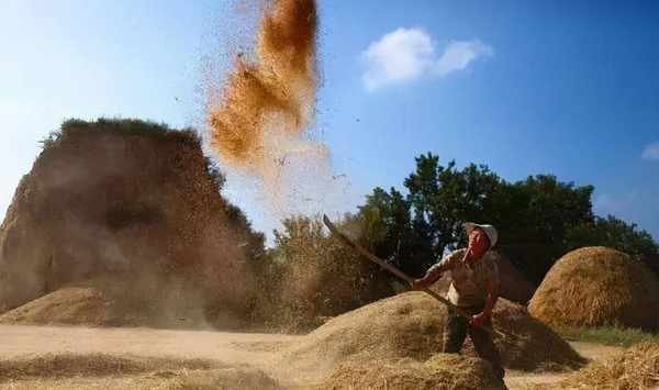 農民伯伯舍不得丟掉發瞭芽的麥粒