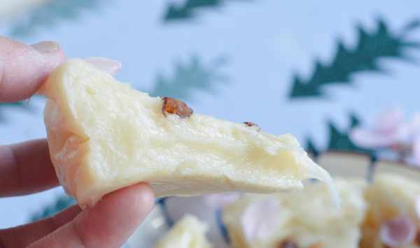 摘上幾朵花點綴一下,這道甜品就更亮眼瞭。