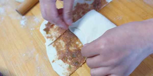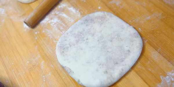 8、將接口捏住,然後輕輕地搟成薄餅。