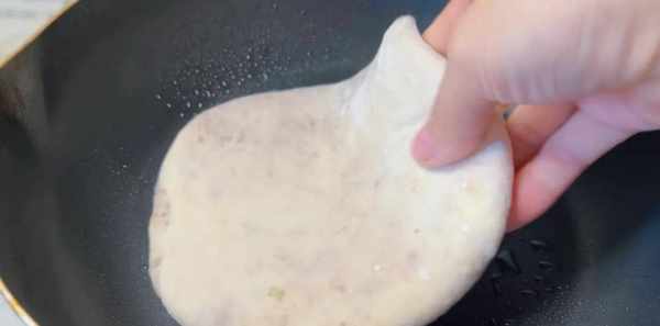 9、平底鍋或者電餅鐺內噴點油,將餅胚放進去。