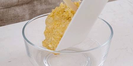 5.趁熱取出,加入白糖拌勻,倒在糯米層上用軟刮刀抹平