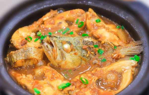 4.砂鍋中加入底油,放入洋蔥片、蒜粒、薑粒煸炒一會兒,聞到香味以後放入醃好的魚塊,把剩餘的醃料也倒入鍋中,再倒入適量的啤酒沒過魚塊,大火燒開以後轉小火燜煮8分鐘就可以瞭。8分鐘以後趁熱撒上蔥花就可以開始食用瞭。