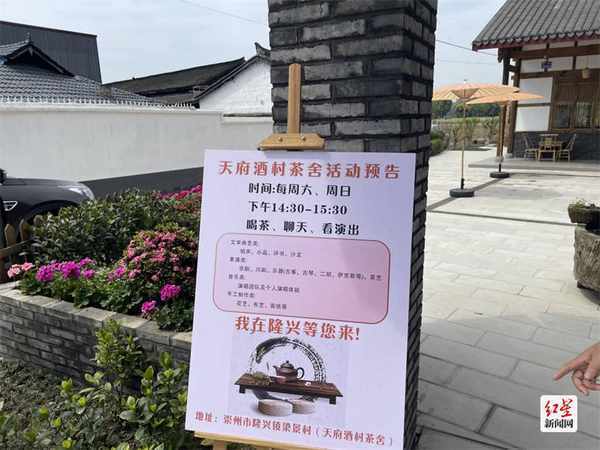 半茶半酒半日閑,在梁景村的天府酒村茶舍,四面環繞著酒香、花香,古樸傳統的建築承載著酒村歷史文化底蘊,傳承著酒村文化和歷史的氣息,為群眾打造瞭豐富多彩及多元化的傳統文化與現代文化相結合的綜合服務體系,並帶動當地居民群眾廣泛參與群眾文化生活,豐富瞭群眾的精神文化生活。“川劇、京劇、相聲、評書......大傢喜歡啥,我們就提供啥。你看我們這裡有茶,旁邊有酒有美食,在這兒可以耍一天。”茶舍負責人、成都黃嘟嘟文化傳媒有限公司總經理張勇開心地說道。