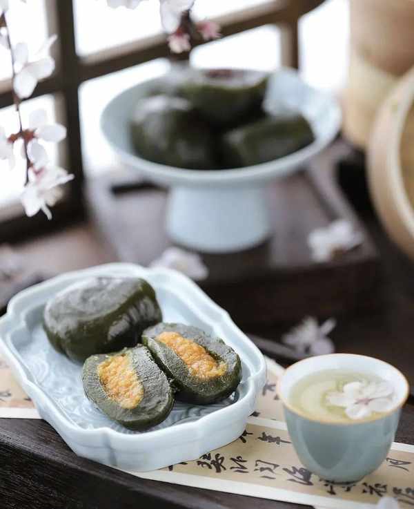 “色如碧玉”,這就是江南人的聰明之處。他們把春天揉進面團裡,在第一抹春色中,尋得瞭青團。制成青團的青草,最常見的是艾草,除此之外,還有鼠麴草、馬蘭頭、泥胡菜、雀麥等,糕團多為糯米,也會加粳米讓其更筋道,內餡甜咸皆有,一口咬下去都是糯唧唧,令人垂涎欲滴。有人說,吃完一口青團,就會忽然理解“把所有的春天都揉進瞭一個清晨”這句歌詞。青團的艾草味香香甜甜,像是把山間過於濃密的綠色變的柔和,獨特的清香化為瞭江南清晨的柔情。