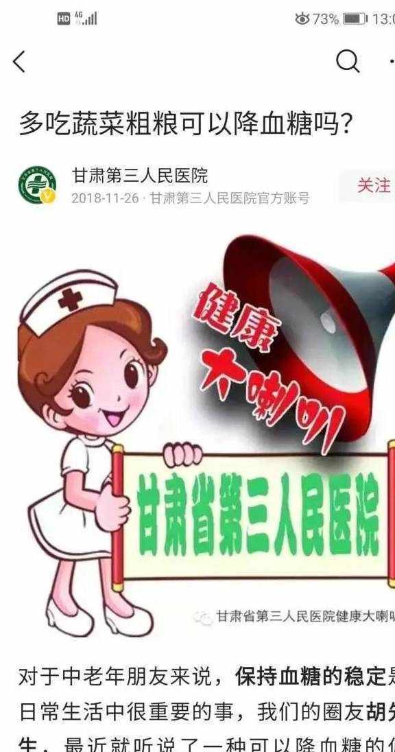騰訊較真欄目曾發佈過科普文章指出,目前無任何食療秘方被證明有效,類似“吃**食物能夠降血糖、治愈糖尿病“帖子隻是些鮮艷、虛幻的氣泡。