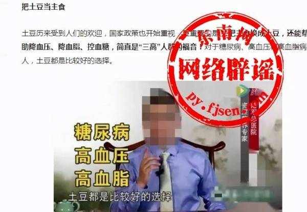 網上熱傳《土豆——降三高、降血糖的最適合老年人》《護血管、降三高…土豆的妙用估計大部分人都不知道_》《土豆渾身是寶,降三高,防癌》《土豆絲千萬別用辣椒炒,對身體很不好,這樣炒降三高美容,防癡呆》《這東西渾身是寶又便宜,傢傢戶戶吃得起,一年四季都有,還降三高》等土豆能抗癌、降血脂、降血壓、降血糖的內容在網絡熱傳,引起網民的關註。