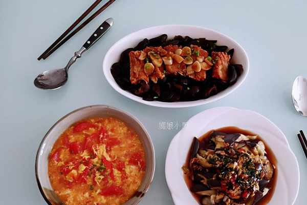午餐:排骨蒸木耳+蒸茄子+西紅柿蛋湯最近人有些懶,因為時不時地牙疼緣故吧,也沒瞭做飯菜的心情,吃飯有時也成瞭痛苦事。不過人是鐵飯是鋼,更何況我不吃還有傢人不能不吃呢,那就簡單做好瞭。兩人一葷一素一湯,簡單夠吃也浪費,給先生蒸瞭排骨,自己蒸瞭茄子軟爛便於咀嚼。兩個菜一鍋同蒸,簡便省事,廚房也少油煙好清理。