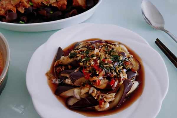 最後將調好的料汁澆淋在蒸熟的茄子上即可。