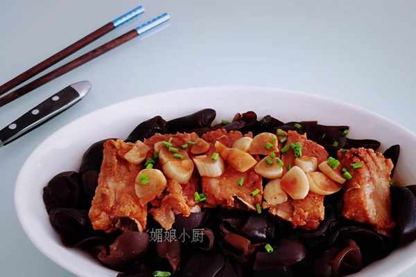 排骨蒸木耳食材:排骨1根,黑木耳1小把,生薑2片,蒜瓣3個,料酒,蔬菜復制醬油,甜辣醬,蒸魚豉油