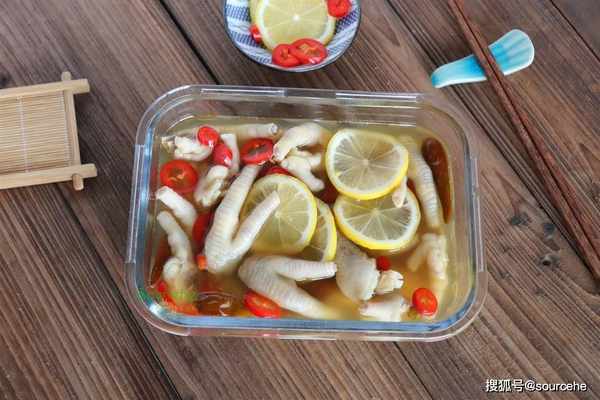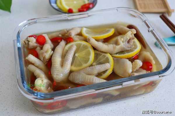 【sourcehe溫馨小貼士】1.裝泡椒雞爪建議用玻璃保鮮盒,或者陶瓷保鮮盒。醋、泡椒水、檸檬是酸性,不能用不銹鋼或者塑料盒。2.什麼是涼白開,就是飲用水煮沸之後放涼,過水為什麼不能直接用飲用水,因為泡椒雞爪不再煮瞭,直接用生水,容易吃壞肚子。3.喜歡酸一點的可以用多放一點醋,喜歡辣的可以加幾個小米辣椒。3.泡椒雞爪加新鮮的檸檬,味道清香不油膩,雞爪更好吃。