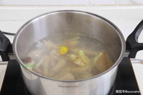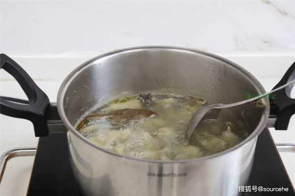 步驟4:煮的過程,有很多漂浮物,可以漏勺撈出。中火煮12分鐘,雞爪煮熟就可以撈出。判斷雞爪煮熟,可以用筷子戳一戳,如果能戳破,雞爪就煮熟瞭。