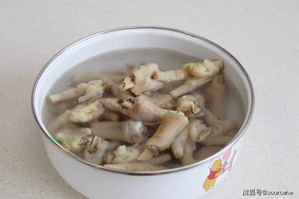 步驟5:提前準備開水放涼,把煮熟的雞爪放入涼白開的水裡,過水,油、漂浮物,統統過掉。