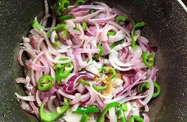 洋蔥,雞蛋和青辣椒條這樣做,出鍋後味道鮮香美味。雞蛋的嫩滑配上洋蔥的清甜,還有辣椒的一點綠,使整道菜看起來很誘人,味道確實很贊,特別費米飯。