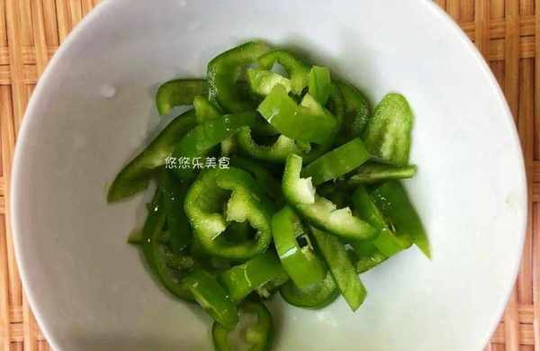 3.青辣椒放清水中沖洗幹凈,洗凈後的辣椒放著切成細條;