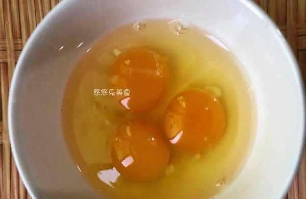 4.洋蔥和雞蛋是最佳搭配,準備好的雞蛋表面清水洗凈,洗凈後的雞蛋打入碗中,用筷子將它們攪拌均勻;