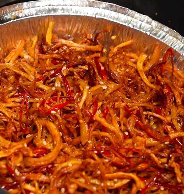 步驟三:空氣炸鍋180度烤20分鐘,中途加幹辣椒、花椒、白芝麻。麻辣鮮香,超級香辣。