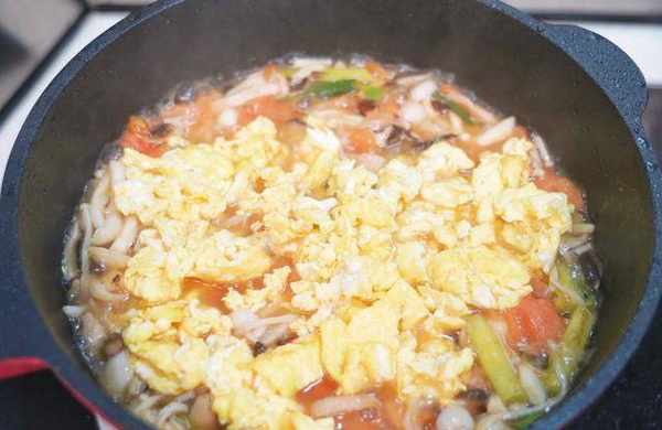 10、翻炒均勻後鍋裡加入適量開水,蓋上鍋蓋大火燒開後轉小火燒5分鐘