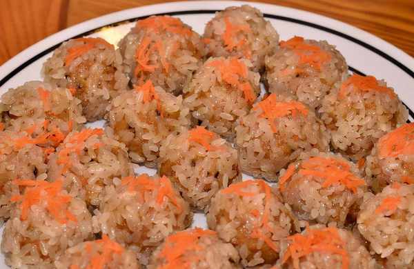 4、將攪拌好的糯米捏小丸子,上鍋蒸15分鐘就可食用瞭。