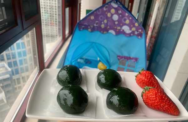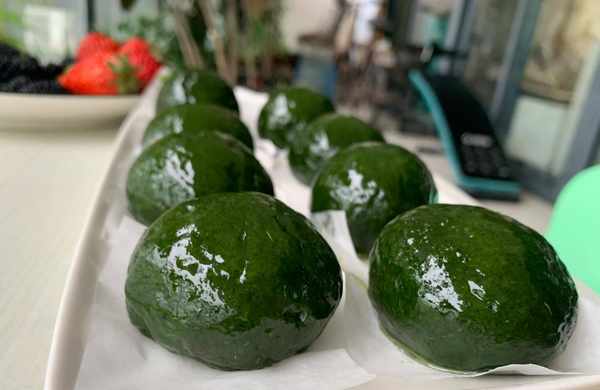 太豪橫瞭,500克糯米粉加瞭一把艾草,顏色綠過頭瞭,拉低瞭顏值。