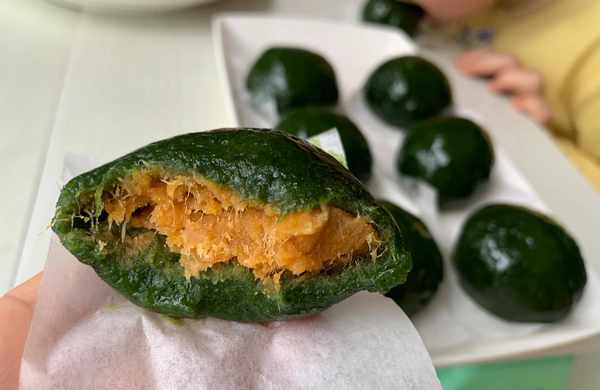 青團的餡料可以用肉松咸蛋黃沙拉醬的,也可以用紅豆餡,還有花生芝麻餡的,還有咸口的,看個人喜歡,總之,一切皆可包,隻要你喜歡。餡不會做的請在評論區留言。