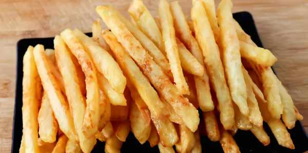 4、鍋裡倒入多一些的油,油溫五成熱,放入凍好的土豆條,炸至泛黃控油撈出,然後轉大火把油溫升高。再復炸一遍,炸制金黃色撈出控油,薯條就炸好瞭。