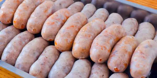 2、準備豬腸衣,倒入水中,加一點白酒去腥,泡上一會兒,再灌水進去看看有沒有漏氣,處理好以後,用手動灌腸把肉灌進去,用手捏一下,有一點點活動空間,就是八分滿,用棉線紮結,用牙簽紮幾個孔排掉裡面氣體。
