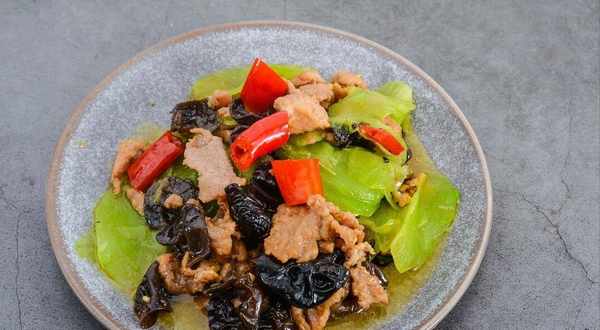 食材:萵筍、木耳、瘦肉、紅椒、薑蒜、鹽、生抽、蠔油、雞粉、料酒
