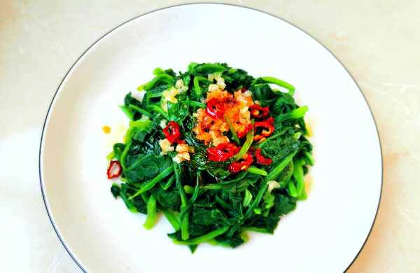 食材:菠菜、蒜、幹辣椒、鹽