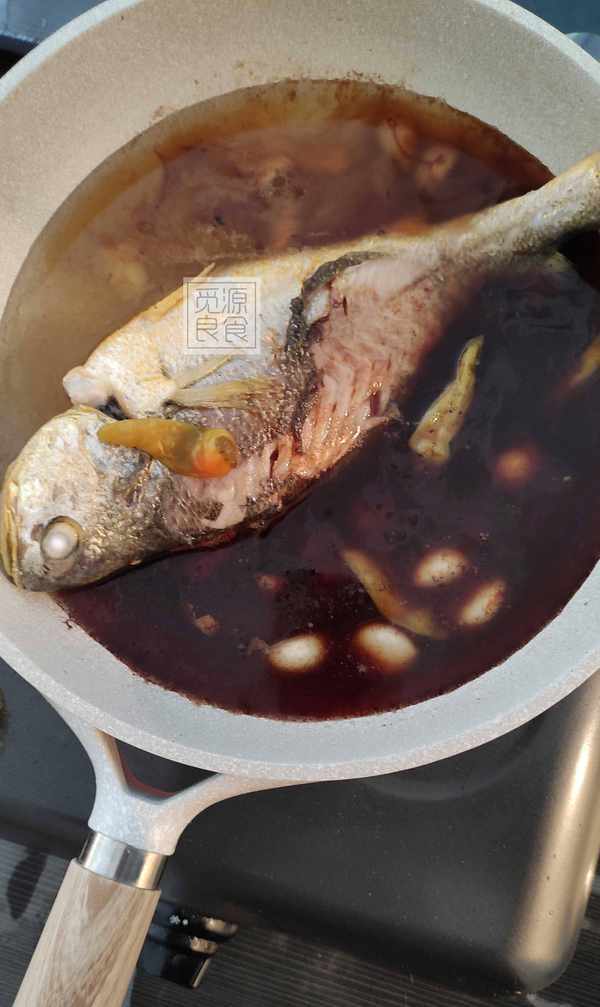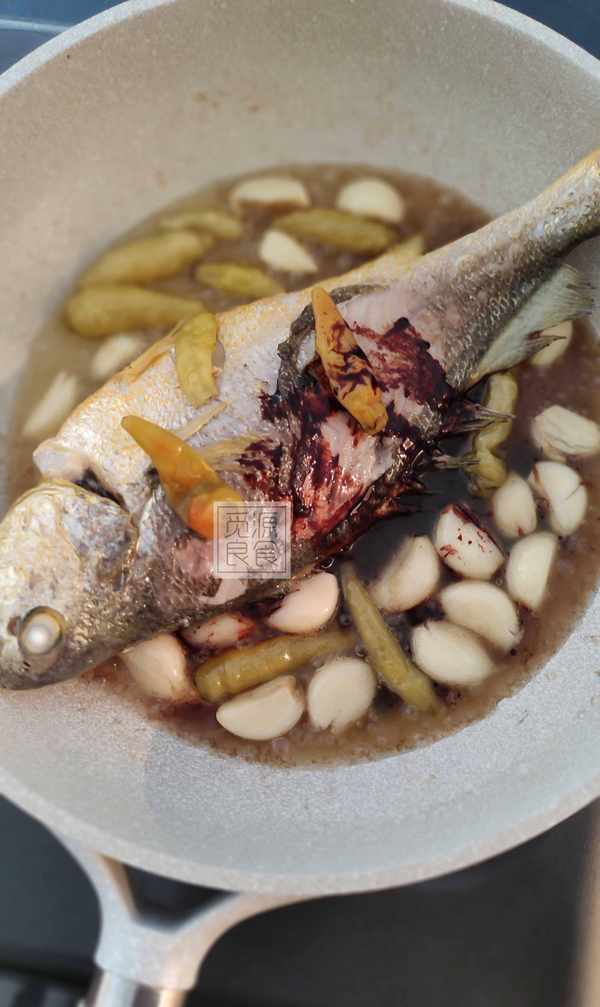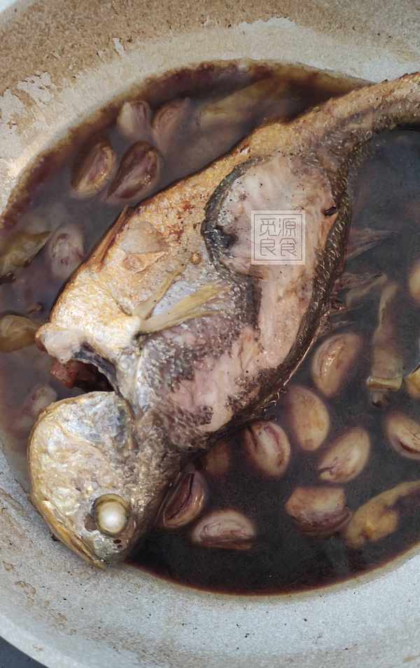 鍋中的黃魚可以在湯汁中多浸泡一會,便於更加入味,類似醃制的原料;