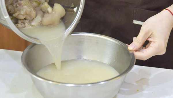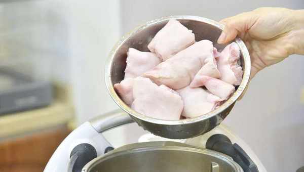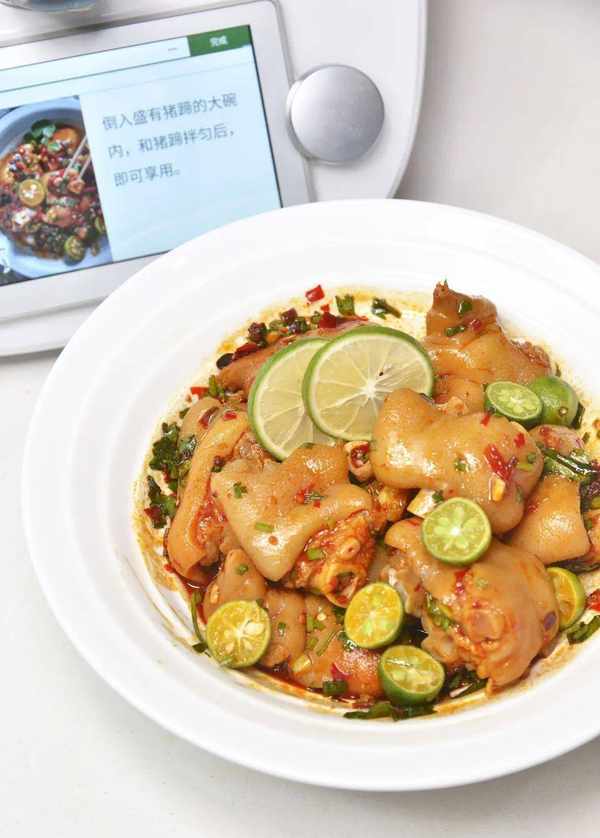1.將小美主鍋加入適量純凈水,豬蹄放入小美網鍋中,以5分鐘/溫度50℃/速度5清洗幹凈,再用純凈水沖洗幹凈晾幹水分;