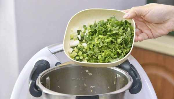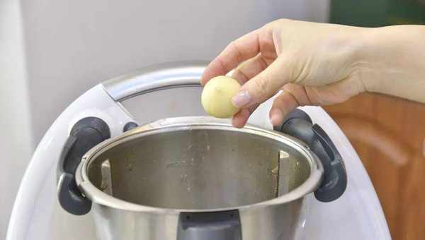 4.將蒜放入小美主鍋中,以3秒鐘/速度7切碎;