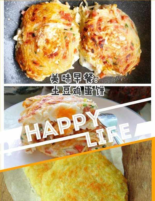 這個餅中的雞蛋和土豆絲是主角,而面粉成瞭配角,餅是可厚可薄的,口感也可以因個人喜歡而調異,因為有土豆絲的加入,餅的口感很好。以餅為主打,再根據營養需要搭配上其他的食物,就成瞭系列美味的早餐套裝。