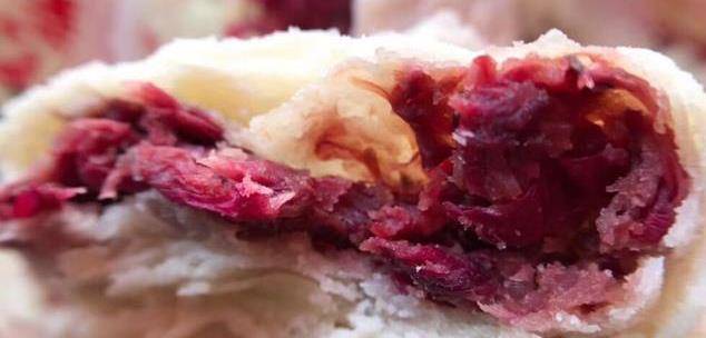 雲南鮮花餅已經被列入省級非遺,這種鮮花餅餅皮金黃酥軟,餡料柔嫩甜蜜,入口酥脆,咬上一口,還能聞到玫瑰花的花香味,酥皮的麥香和蛋香。